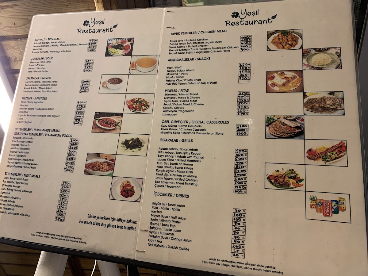 Yeşil Restaurant Menu